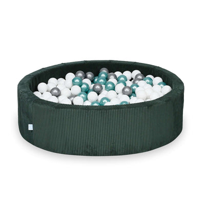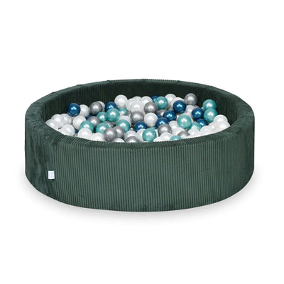 Ball Pit 110x30 Corduroy Green with balls 400 pcs: pearl, silver, metallic turquoise, metallic blue