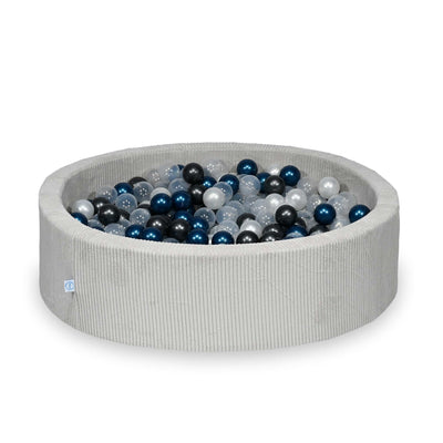Ball Pit 110x30 Corduroy Grey with balls 400 pcs: transparent, pearl, metallic graphite, matallic blue