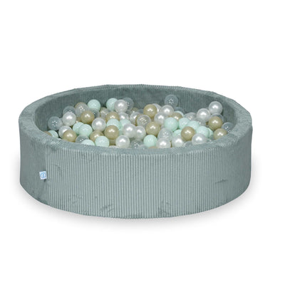 Ball Pit 110x30 Corduroy Light Mint with balls 400 pcs: pearl, light gold, baby pink pearl, baby blue pearl