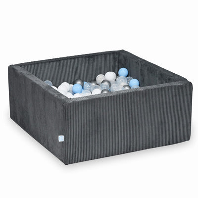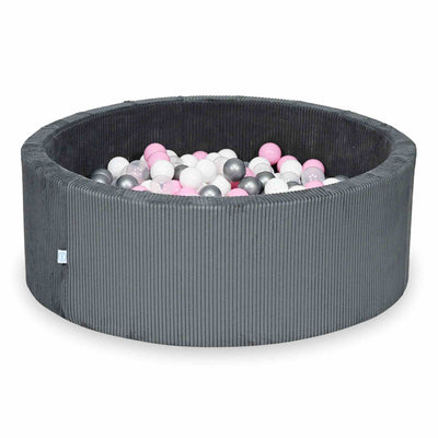 Ball Pit 110x40 Corduroy Graphite with balls 500 pcs: pearl, silver, baby pink pearl, baby blue pearl
