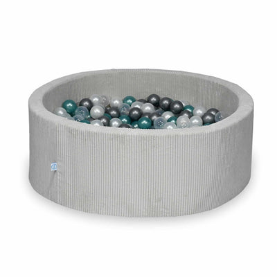 Ball Pit 110x40 Corduroy Grey with balls 500 pcs: transparent, pearl, silver, metallic turquoise