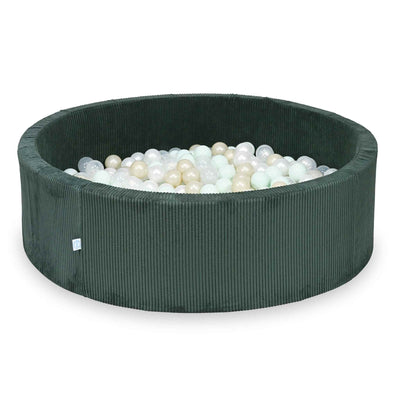Ball Pit 130x40 Corduroy Green with balls 700 pcs: transparent, pearl, light mint, light gold