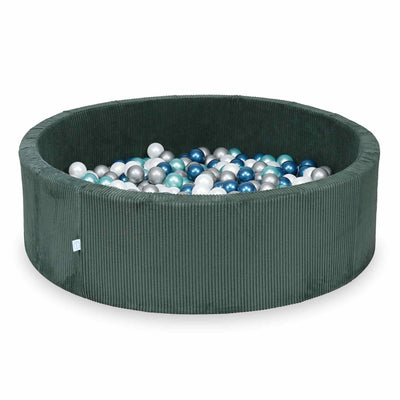 Ball Pit 130x40 Corduroy Green with balls 700 pcs: pearl, silver, metallic turquoise, metallic blue
