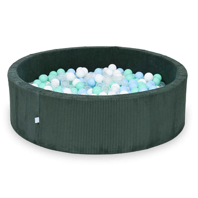 Ball Pit 130x40 Corduroy Green with balls 700 pcs: transparent, white, mint, baby blue