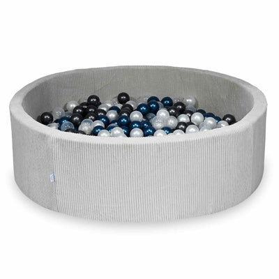 Ball Pit 130x40 Corduroy Grey with balls 700 pcs: transparent, pearl, metallic graphite, matallic blue