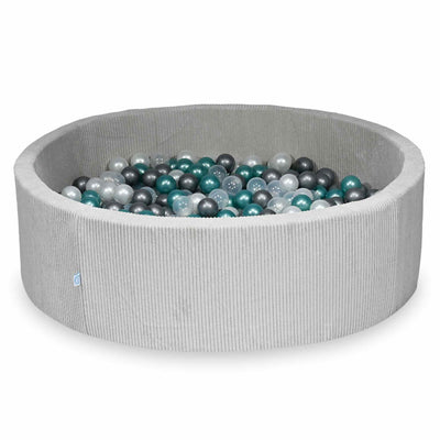 Ball Pit 130x40 Corduroy Grey with balls 700 pcs: transparent, pearl, silver, metallic turquoise