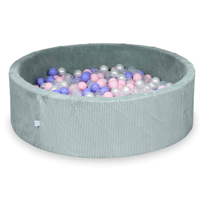 Ball Pit 130x40 Corduroy Light Mint with balls 700 pcs: transparent, pearl, baby pink, heather
