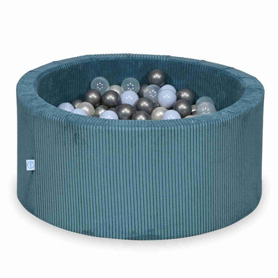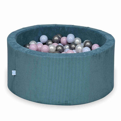 Ball Pit 90x40 Corduroy Blue with balls 300 pcs: pearl, silver, light gold, metallic turquoise