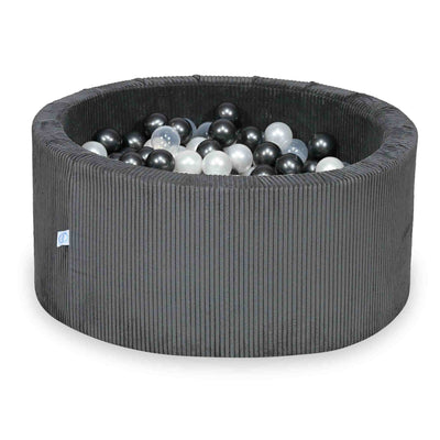 Ball Pit 90x40 Corduroy Graphite with balls 300 pcs: pearl, silver, baby pink pearl, baby blue pearl