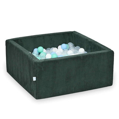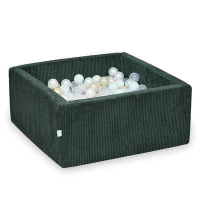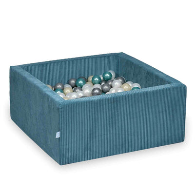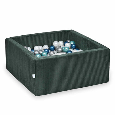 Ball Pit 90x90x40 Corduroy Green with balls 400 pcs: pearl, silver, metallic turquoise, metallic blue