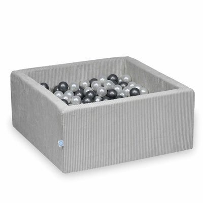 Ball Pit 90x90x40 Corduroy Grey with balls 400 pcs: transparent, pearl, metallic graphite, matallic blue