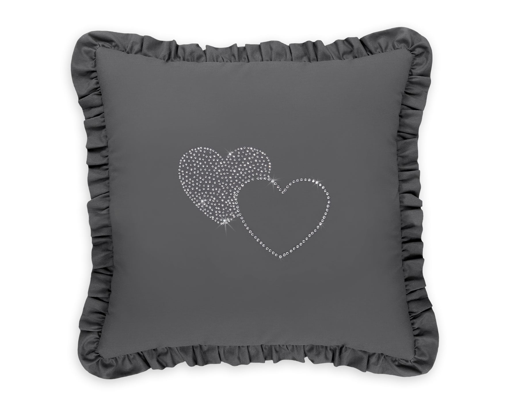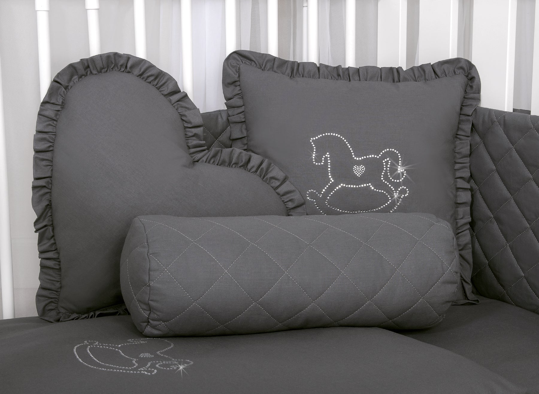 Edles Kissen mit Applikation. Mit Fransen verziert. Der Kissenbezug besticht durch eine glitzernde Applikation aus feinen Zirkoniasteinen auf glattem Baumwollstoff. Oberstoff aus 100 % Baumwolle (nicht abnehmbar). Die Füllung des Kissens besteht aus Eco Fillball geprüften Silikonkügelchen – „künstlicher Flaum“ für Kissen – die Füllung sorgt für eine gute Ruhe des Babys und eine Luftzirkulation. Es eignet sich hervorragend als Dekoration für das Kinderzimmer. Das Kissen ist einteilig, ohne abnehmbaren Kissenbezug. Zusammen mit unserer Bettwäsche ist es ein wunderschönes Set.