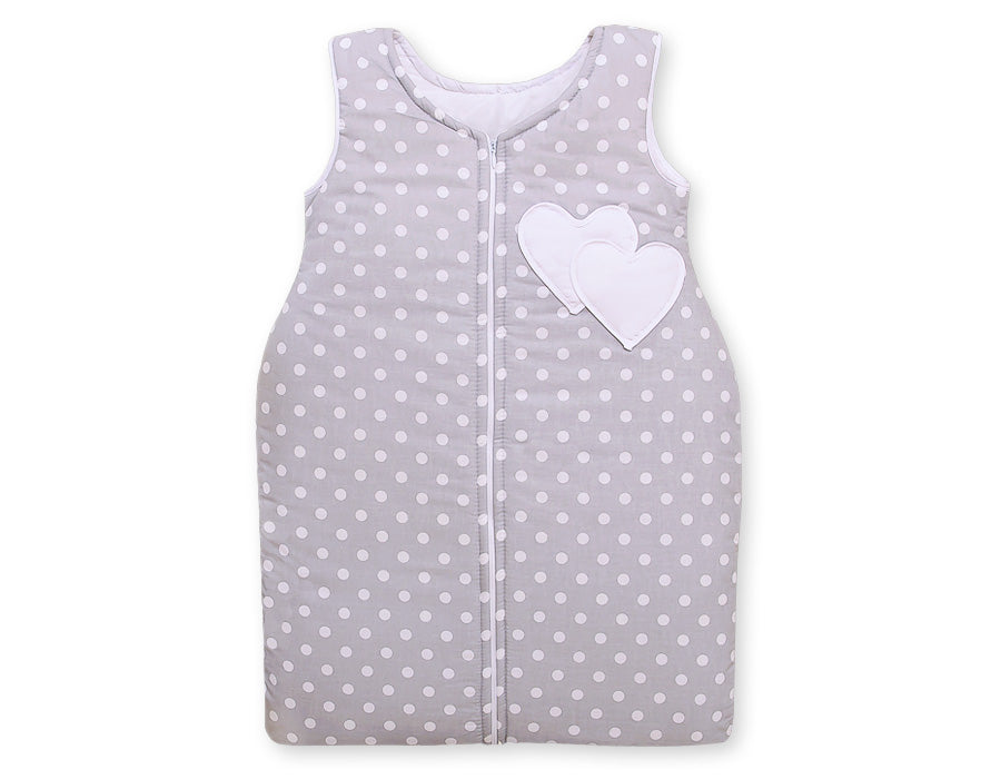 Schlafsack - Hängende Herzen weiße Punkte auf grau
