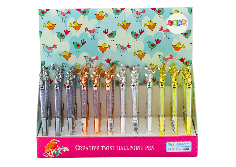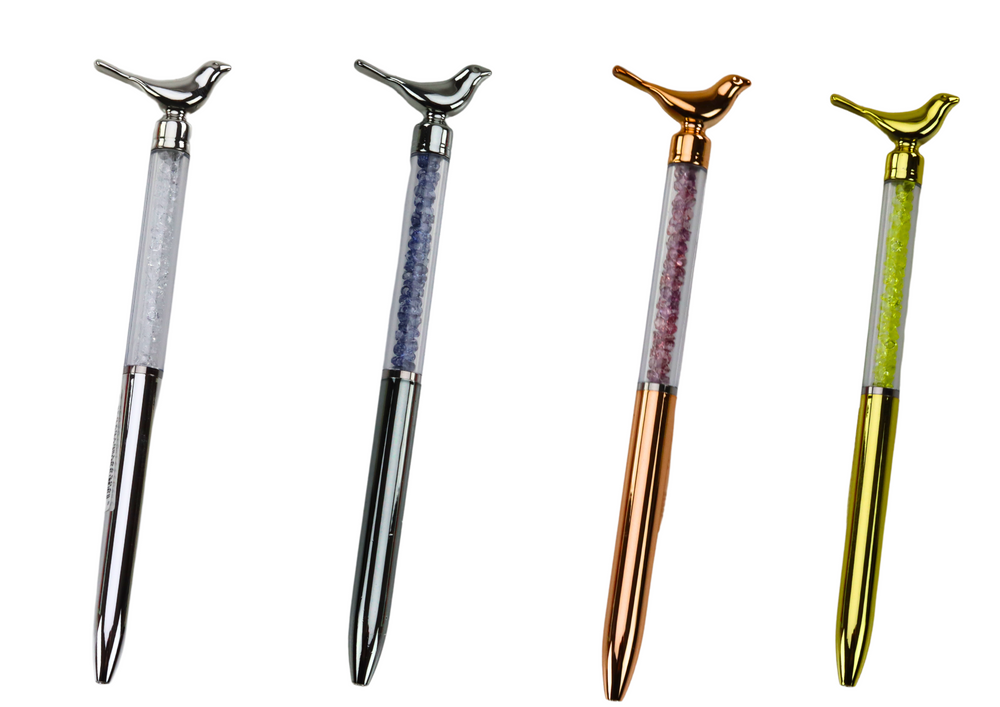 Der Bird-Kugelschreiber in Blau ist ein stilvoller und einzigartiger Stift mit einem wunderschönen Vogeldesign an der Spitze. Das transparente Gehäuse mit kleinen Diamanten schimmert dezent im Licht und sorgt für eine elegante Optik. Mit einer Schreibstärke von 0,7 mm und blauer Tinte ist dieser Stift perfekt für den täglichen Gebrauch. Verleihen Sie Ihrem Schreiberlebnis mit diesem wunderschönen Kugelschreiber einen Hauch von Flair.