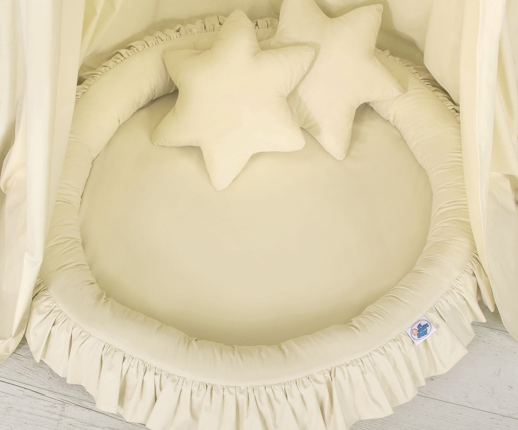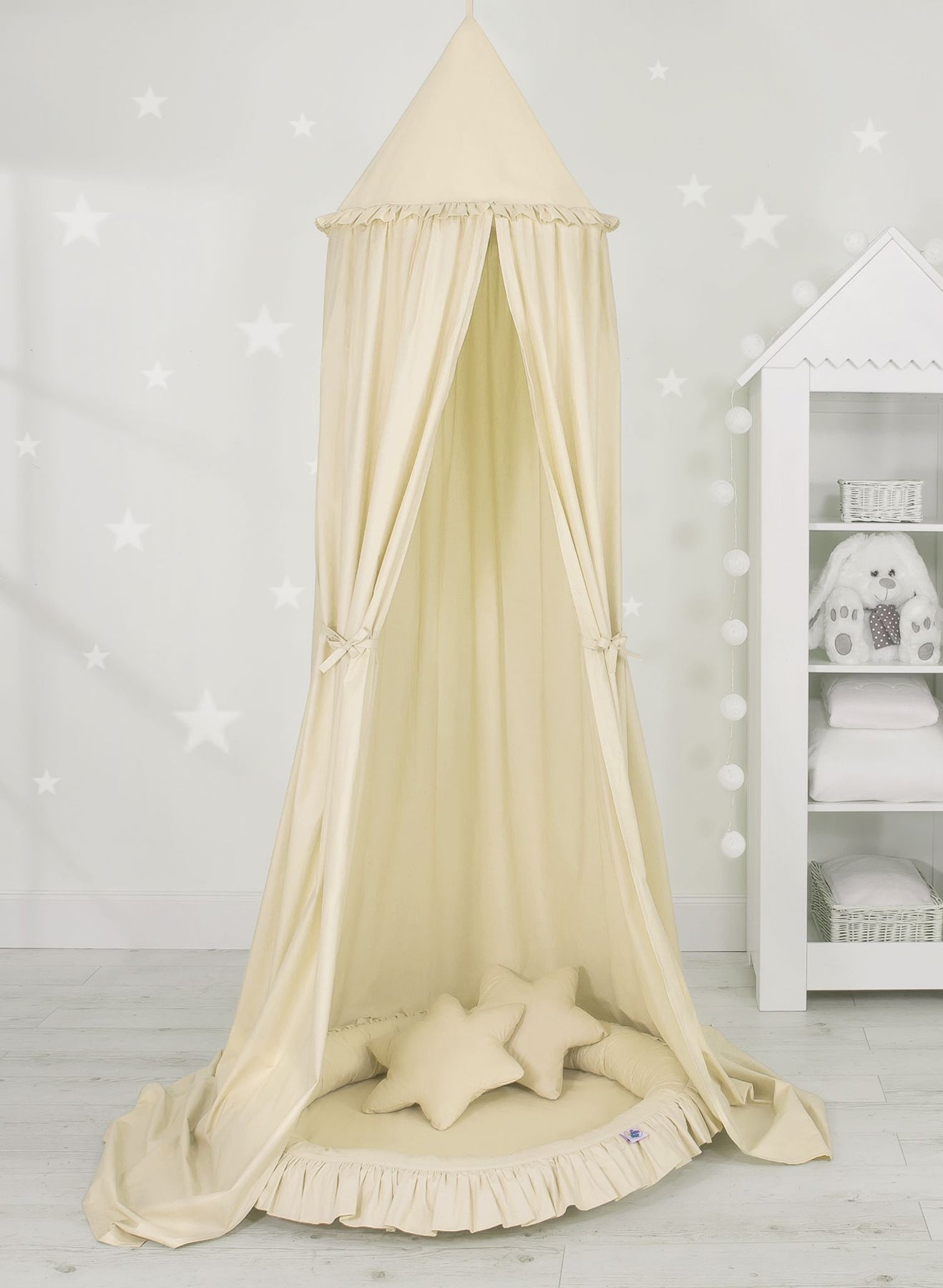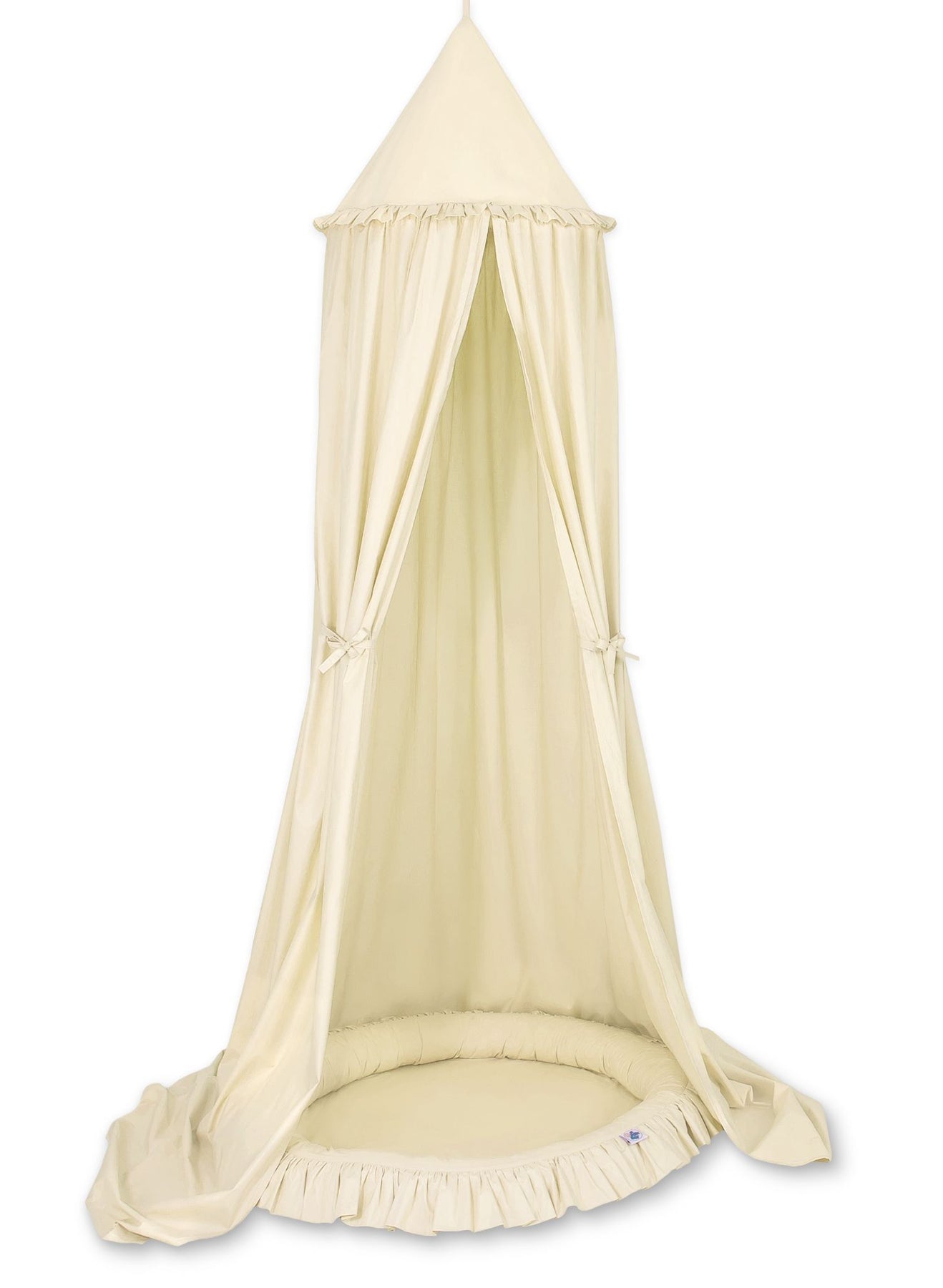 Een effectieve, langhangende luifel. Een prachtig element in de kinderkamer. Het kan gebruikt worden als unieke decoratie van een babybedje, maar het kan ook een prachtige plek om te spelen. Door over het bedje te hangen, wordt de luifel beschermd tegen te veel licht en lawaai, waardoor een knusse sfeer ontstaat. en veilige plek om te rusten in het bedje. De luifel kan eenvoudig aan het plafond worden gemonteerd. De lengte van 260 cm maakt het mogelijk om de uiteinden op de vloer te plaatsen. Hierdoor ontstaat een perfecte verstopplek en speelplek voor oudere kinderen. De luifel is gemaakt van Okotex-gecertificeerde, 100% katoenen stof. Aan de zijkanten zitten praktische linten om de luifel vast te binden en zo een mooie tent te creëren. De rand aan de bovenzijde kan verwijderd worden. De stof is wasbaar op 30 graden. Gecombineerd met lovely nest met een volant het wordt een perfecte plek voor plezier. De zachte randen bieden veiligheid voor de baby's. De rand is gevuld met goedgekeurde, niet-allergene vullingg: Eco -Fillball-vezelss. Ze zijn zacht, veerkracht en ze zorgen voor een goede luchtcirculatie. De onderkant van de baby nest met volant is gemaakt van een moderne, anti-allergenic, gecertificeerd materiaal. De onderste inleg kan worden verwijderd en de hoes kan worden gewassen op 30 graden.