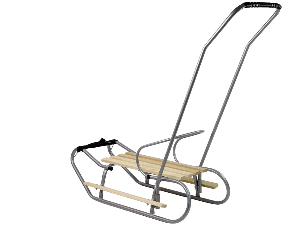 Metalen slee met duwstang en rugleuning in zilver. Deze stevige en duurzame slee is perfect voor winterse avonturen in de sneeuw. De metalen constructie zorgt voor extra stabiliteit en langdurig gebruik. De comfortabele rugleuning biedt ondersteuning tijdens het zitten, terwijl de duwstang het voortduwen van de slee vergemakkelijkt. Ideaal voor kinderen en volwassenen die samen willen genieten van het plezier van slee�n. Geschikt voor gebruik op hellingen en vlakke oppervlakken. Een must-have voor een gezellige dag in de sneeuw.