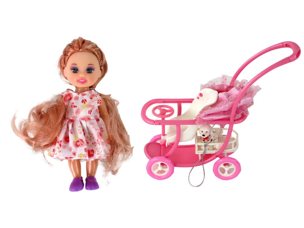 Lucy poppenset zwangere kinderwagen lang bruin haar