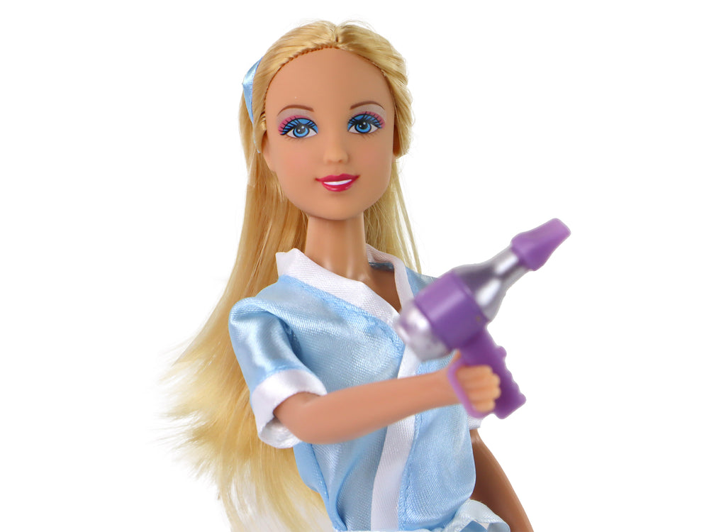 Maak kennis met onze schattige pop met lange blonde haren, de ideale speelkameraad voor het leren stylen. Deze set bevat verschillende badkameraccessoires en meubels voor eindeloos plezier tijdens het baden. Laat je creativiteit de vrije loop terwijl je jouw pop verzorgt en opfrist. Dit kinderbadjas-set is perfect voor zowel speelplezier als educatieve momenten in de badkamer.