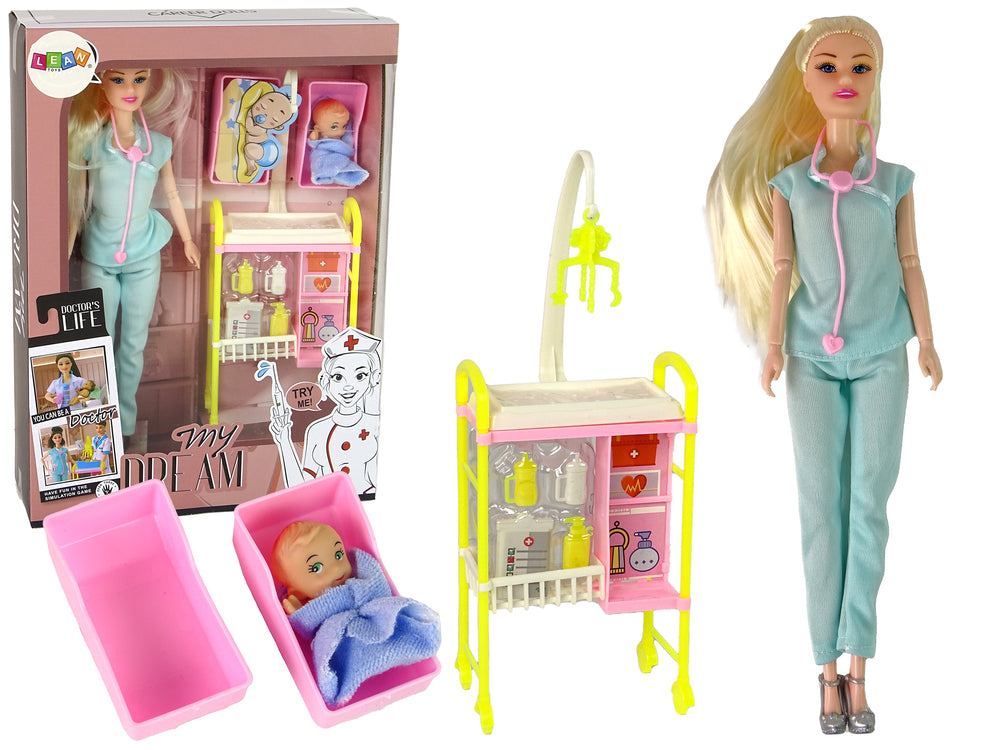 Ontdek de wereld van de Dokterpop met lang blond haar en blauwe ogen. Deze schattige pop komt met een stijlvolle blauwe medische labjas, een stethoscoop, broek en zilveren schoenen, wat bijdraagt aan haar charme. Perfect als cadeau voor toekomstige dokters en verzorgers die hun passie voor zorg en gezondheid willen uitdragen. Laat de creativiteit en verbeelding bloeien met deze prachtige dokterpop.