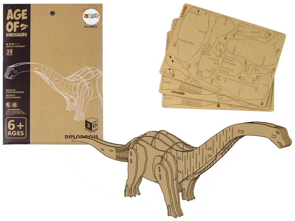 Houten 3D ruimtelijke puzzel Brontosaurus educatieve montage 38 stukjes
