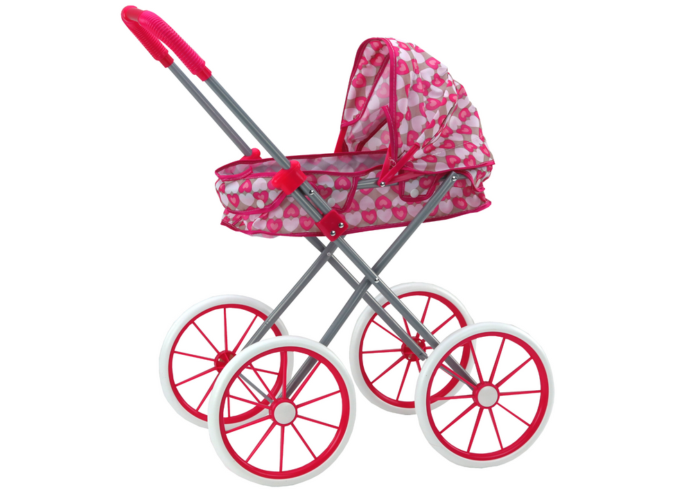 Deze opvouwbare roze poppenwagen met grote wielen is het perfecte speeltje voor kinderen die dol zijn op rollenspel. Met een charmant ontwerp versierd met schattige harten, trekt deze wagen gegarandeerd de aandacht van je kleintje. De poppenwagen is eenvoudig te monteren, waardoor hij snel klaar is voor gebruik. Tijdens het wandelen biedt hij een realistische ervaring die de ontwikkeling van empathie en verbeeldingskracht stimuleert. Laat je kind met plezier zijn of haar poppen en knuffels vervoeren in deze stijlvolle en functionele poppenwagen.
