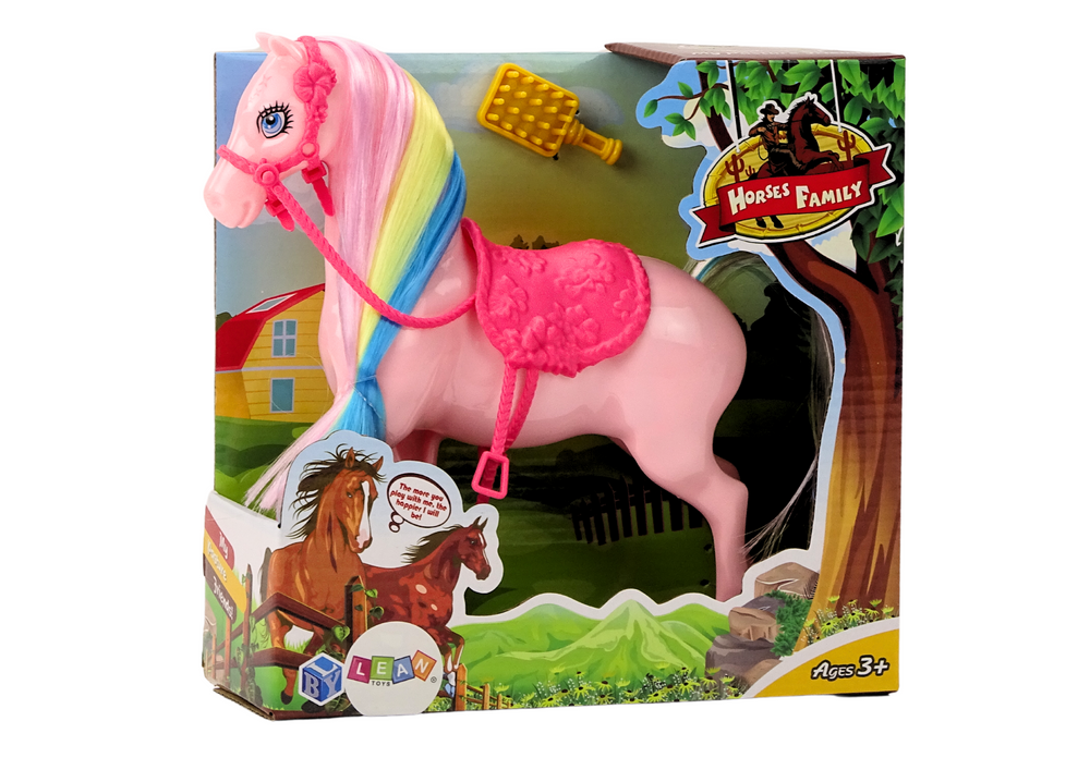 Beeldje van een paard met kleurrijke manen en een schattig roze borstelzadel. Met afmetingen van 20x19x5 cm is dit het perfecte cadeau voor elke kleine paardenliefhebber. Dit charmante decoratiestuk voegt een speelse touch toe aan elke kamer en stimuleert de fantasie van kinderen. Schenk dit prachtige paard en laat hun liefde voor paarden opbloeien!