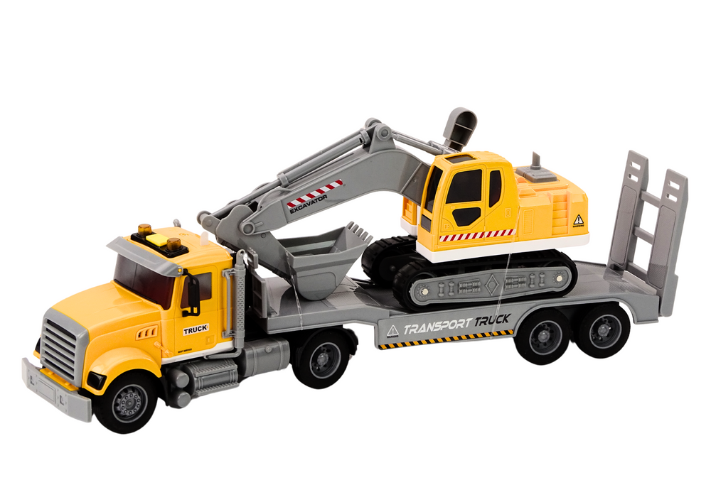 De Lora truck met rupsgraafmachine in het opvallende geel biedt realistisch speelplezier met lichte en geluidseffecten. De graafmachine is voorzien van een stuurbare bak en een rubberen aandrijving, terwijl de truck gebruikmaakt van een frictieaandrijving. Dit zorgt voor dynamisch spel en stimuleert de verbeelding van het kind.