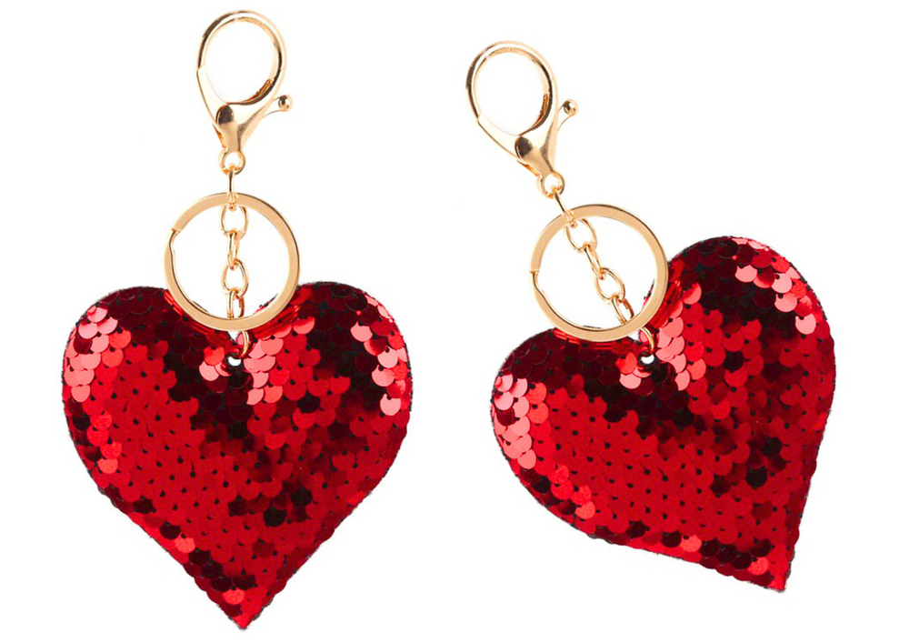 Deze hartvormige sleutelhanger is versierd met dubbelzijdige pailletten. Wanneer je er met je hand overheen gaat, draaien de rode pailletten om en onthullen de zilveren kant. Het is een elegante en praktische aanvulling voor je sleutels of tas, die schittering en stijl toevoegt.
