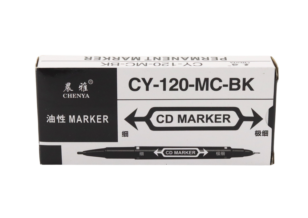 Set dubbelzijdige waterdichte markers voor CD's Zwart 10st.