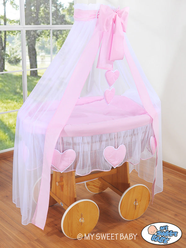 Moses Mand/Rieten laken wieg Deluxe - Amelie roze