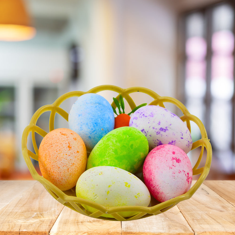 Paasdecoraties in Mandje Eieren Wortel Kleurrijk 7st zijn een vrolijke toevoeging aan uw paasversiering. Deze set bestaat uit zes kleurrijke eieren, versierd met subtiele stippen, en een schattige styrofoam wortel. Alles is prachtig gepresenteerd in een plastic mandje, wat zorgt voor een gezellige en feestelijke uitstraling. Perfect om uw huis in paasstemming te brengen of als decoratie voor een paasheuvel. Voeg een vleugje kleur en plezier toe aan uw paasfeest met deze charmante decoraties.