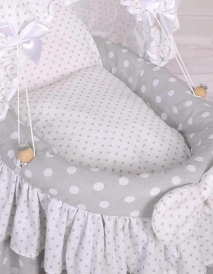 MY SWEET BABY rieten wieg voor poppen is van de hoogste kwaliteit en prachtige producten voor kinderen. Gemaakt van natuurlijk riet (wilg) en hout. Elk detail is prachtig genuanceerd als resultaat van zorgvuldig handwerk. Lange voering tot aan de grond, extra franjes en vooral. Perfect cadeau voor een klein meisje.
