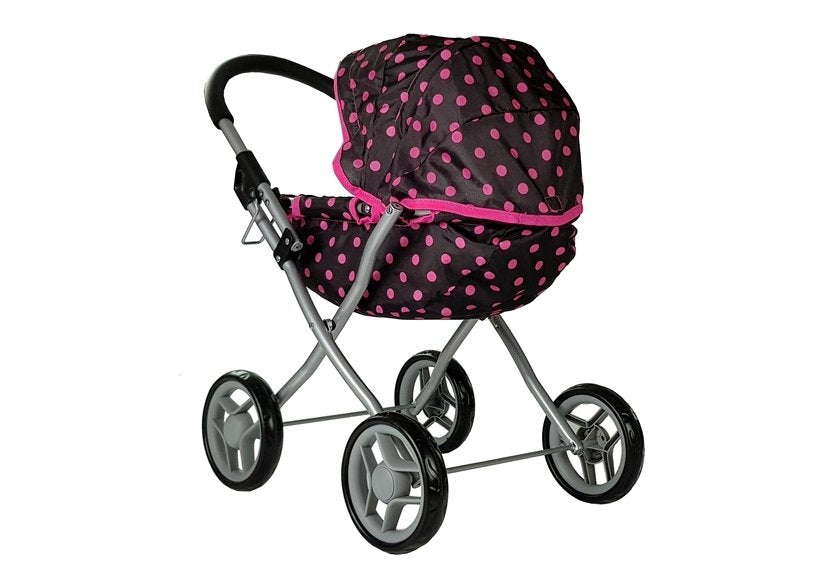 Poppenwagen Alice Zwart-Roze Gestippeld