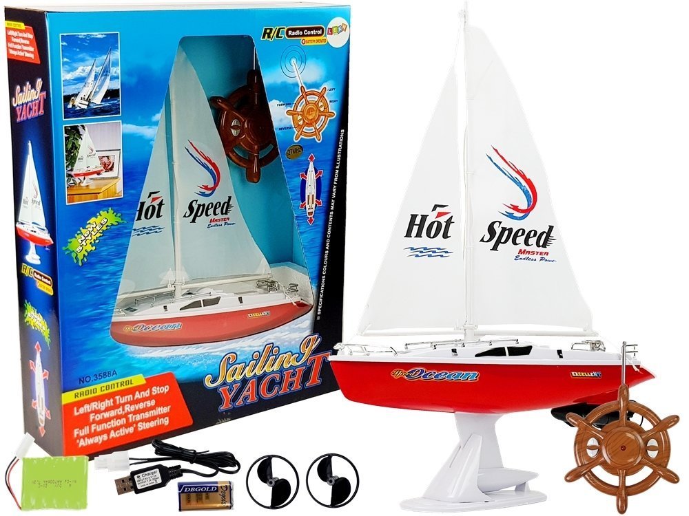 Op afstand bestuurbare zeilboot 50 cm Op afstand bestuurbaar roer 27 Mhz 15 km/u Rood