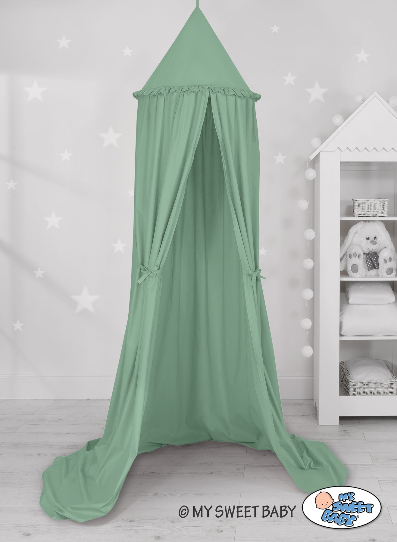 Een effectieve, langhangende luifel. Een prachtig element in de kinderkamer. Het kan gebruikt worden als unieke decoratie van een babybedje, maar het kan ook een prachtige  plek om te spelen. Door over het bedje te hangen, wordt de luifel beschermd tegen te veel licht en lawaai, waardoor een knusse sfeer ontstaat. en veilige plek om te rusten in het bedje. De luifel kan eenvoudig aan het plafond worden gemonteerd. De lengte van 260 cm maakt het mogelijk om de uiteinden op de vloer te plaatsen. Hierdoor ontstaat een perfecte verstopplek en speelplek voor oudere kinderen. De luifel is gemaakt van Okotex-gecertificeerde, 100% katoenen stof. Aan de zijkanten zitten praktische linten om de luifel vast te binden en zo een mooie tent te creëren. De rand aan de bovenzijde kan verwijderd worden. De stof is wasbaar op 30 graden.
