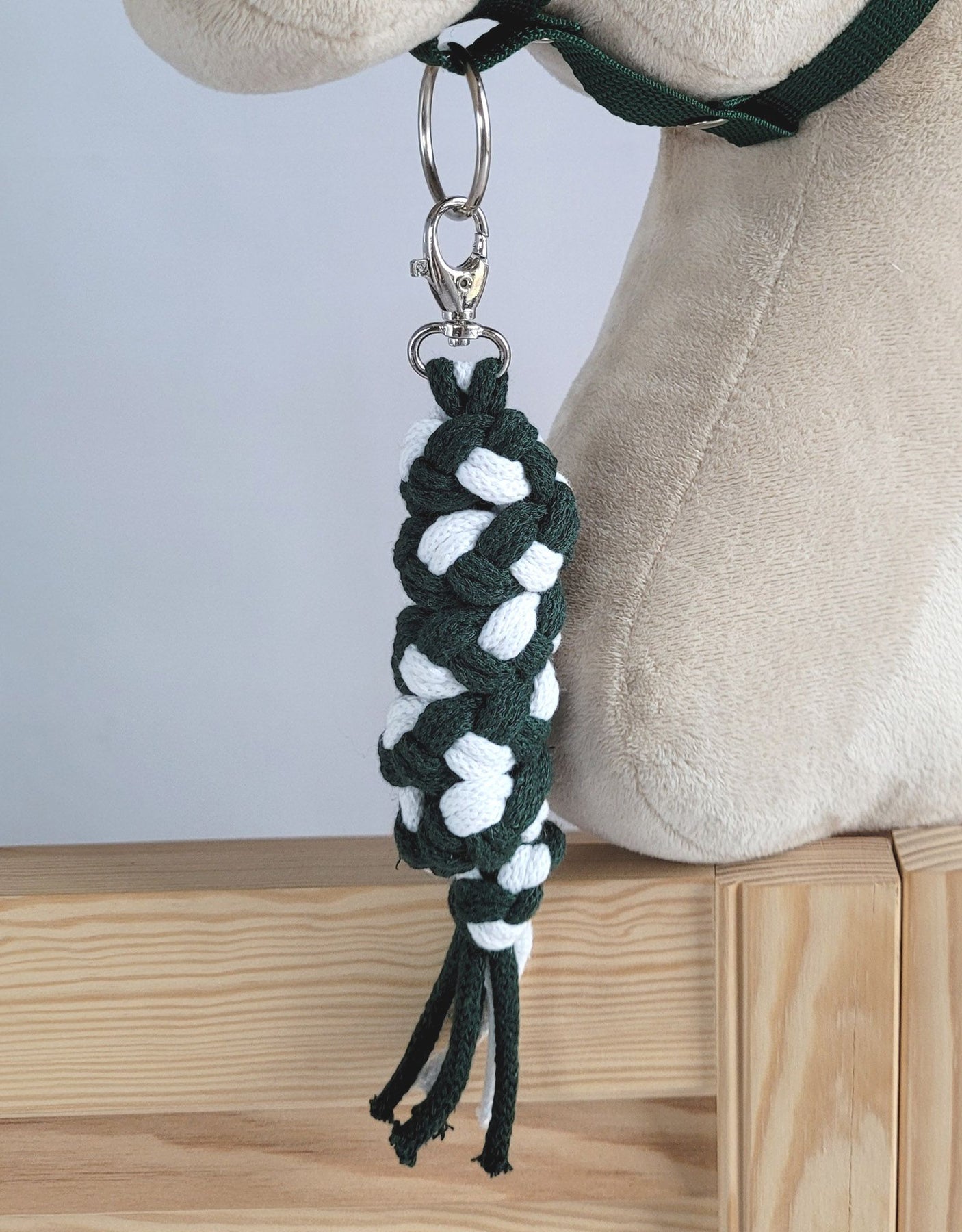 Hoge kwaliteit, handgemaakte zachte ketting voor hobbypaard. De ketting is zorgvuldig gevlochten van sterk, dubbel gedraaid katoenen koord met een diameter van 5 mm. De tether is comfortabel in gebruik, veroorzaakt geen schaafwonden en is niet-allergeen. De karabijnhaak is gemaakt van zilverkleurig metaal.