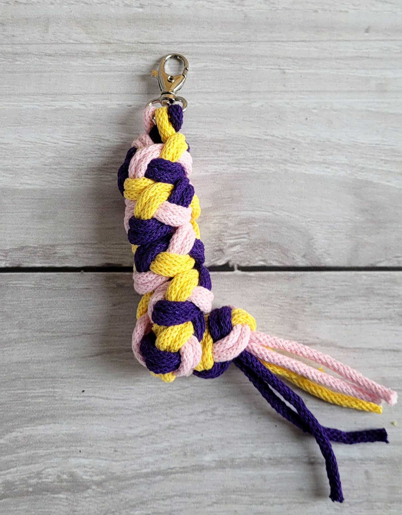 Tether voor Hobbypaard gemaakt van dubbel - lichtroze/donkerpaars/geel