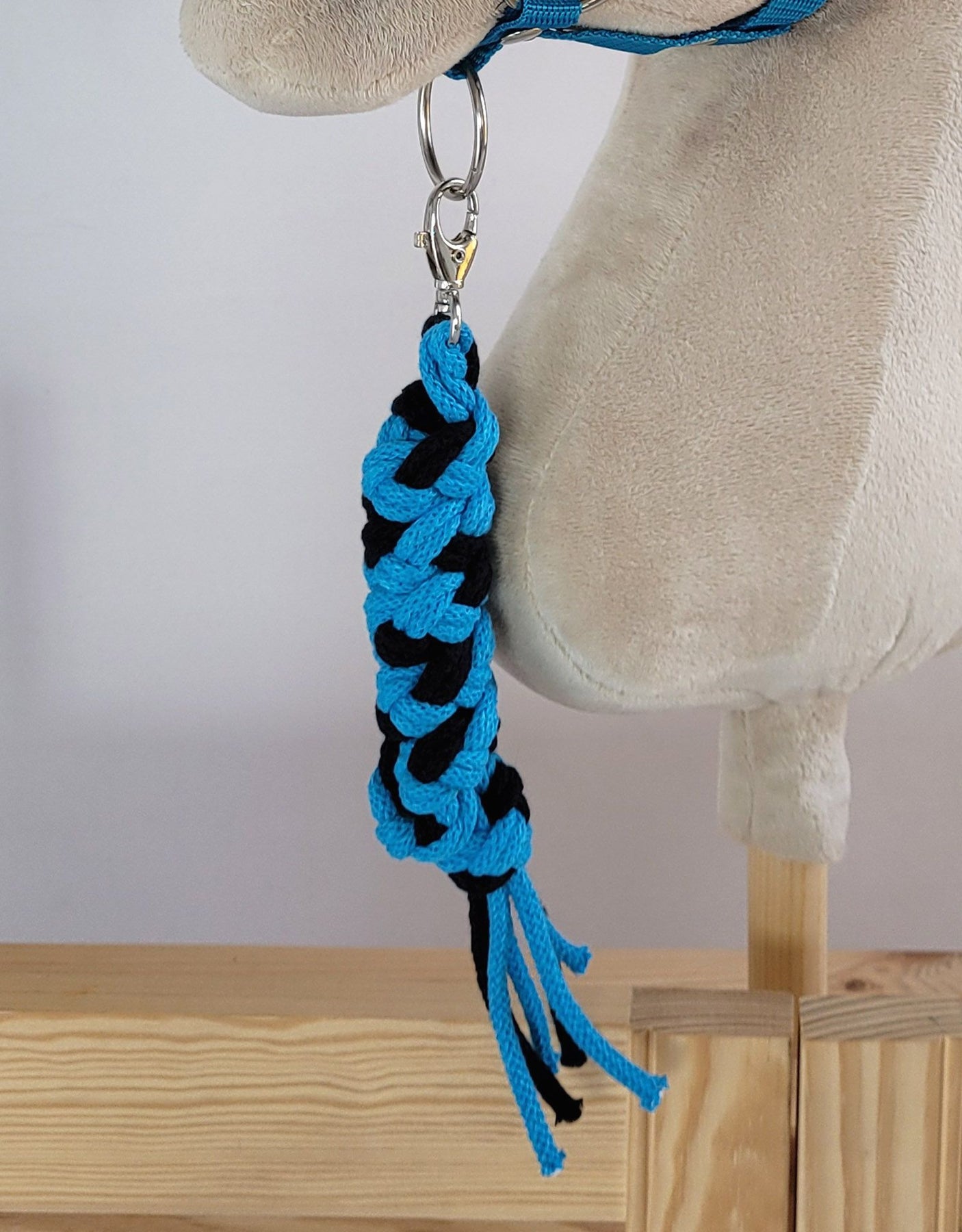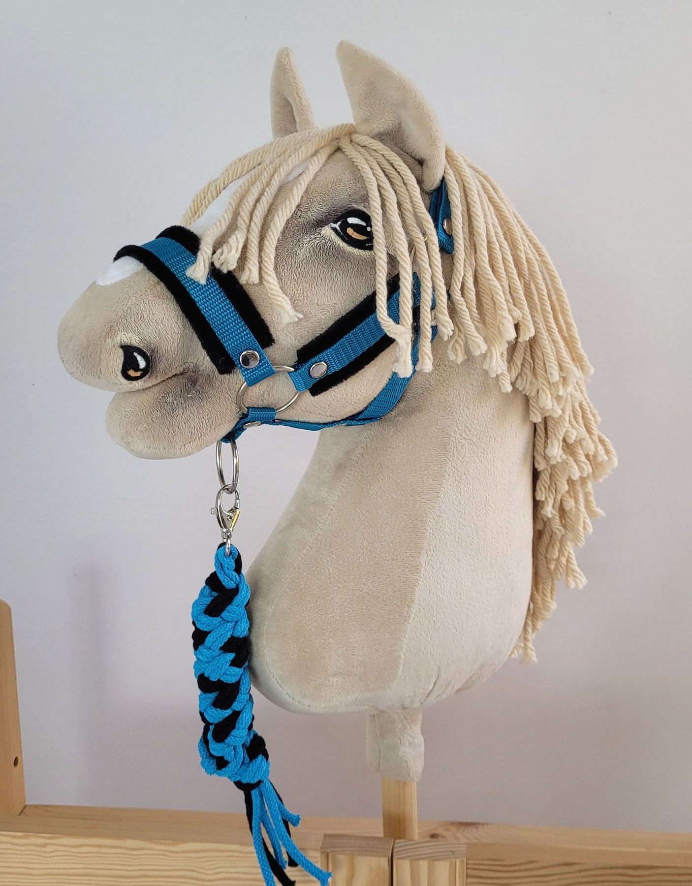 Tether voor Hobbypaard gemaakt van dubbeltouwkoord - zwart-turkoois