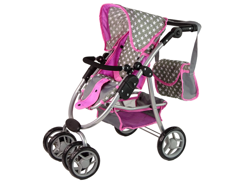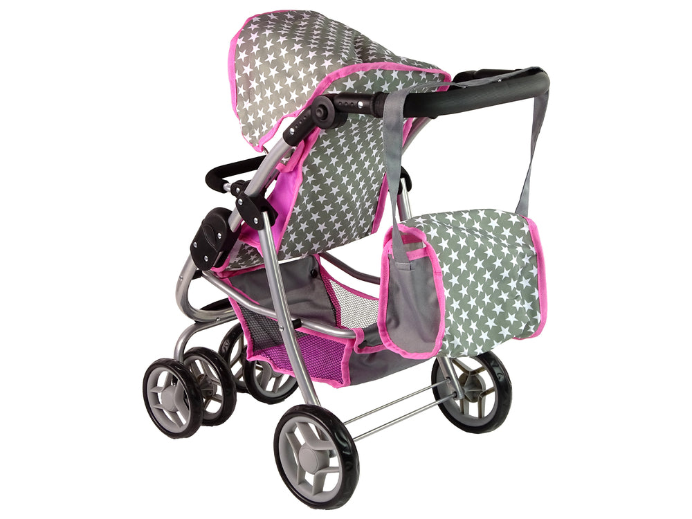 Puppenwagen 2 in 1 Tragetasche rosa Sterne