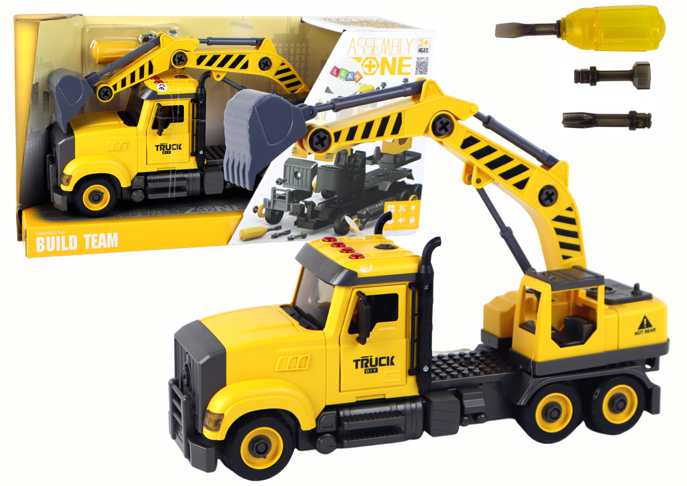 Der gelbe Kran-LKW zum Aufschrauben und Drehen ist das ideale Geschenk für Autoliebhaber und actionbegeisterte Kinder! Dieser Spielzeug-Kranwagen bietet eine realistische Darstellung des Fahrzeugs und gibt Ihren Kindern das Gefühl, echte Fahrer zu sein. Mit den Maßen 33 cm x 16 cm x 9,5 cm ist es perfekt für aktives Spielen. Stimulieren Sie die Kreativität und Motorik Ihrer Kinder mit diesem tollen Kranwagen!