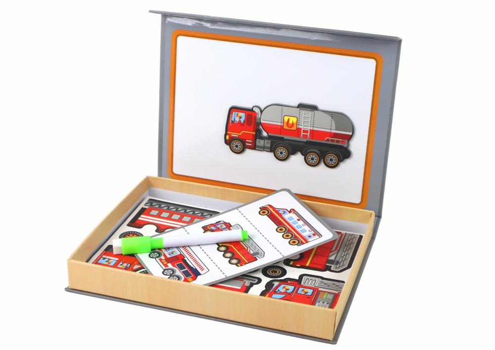 Entdecken Sie mit diesem Set magnetischer Puzzles die faszinierende Welt der Feuerwehrautos! Die Magnettafel eignet sich nicht nur hervorragend zum Lösen von Rätseln, sondern auch zum kreativen Zeichnen mit dem Filzstift. Lassen Sie der Fantasie Ihres Kindes freien Lauf, während es verschiedene Feuerwehrautos kennenlernt. Diese Kombination aus Spielen und Lernen fördert auf spielerische Weise die Kreativität und Entwicklung der Kinder. Perfekt für junge Abenteurer, die Feuerwehrleute und ihre heldenhaften Fahrzeuge lieben!