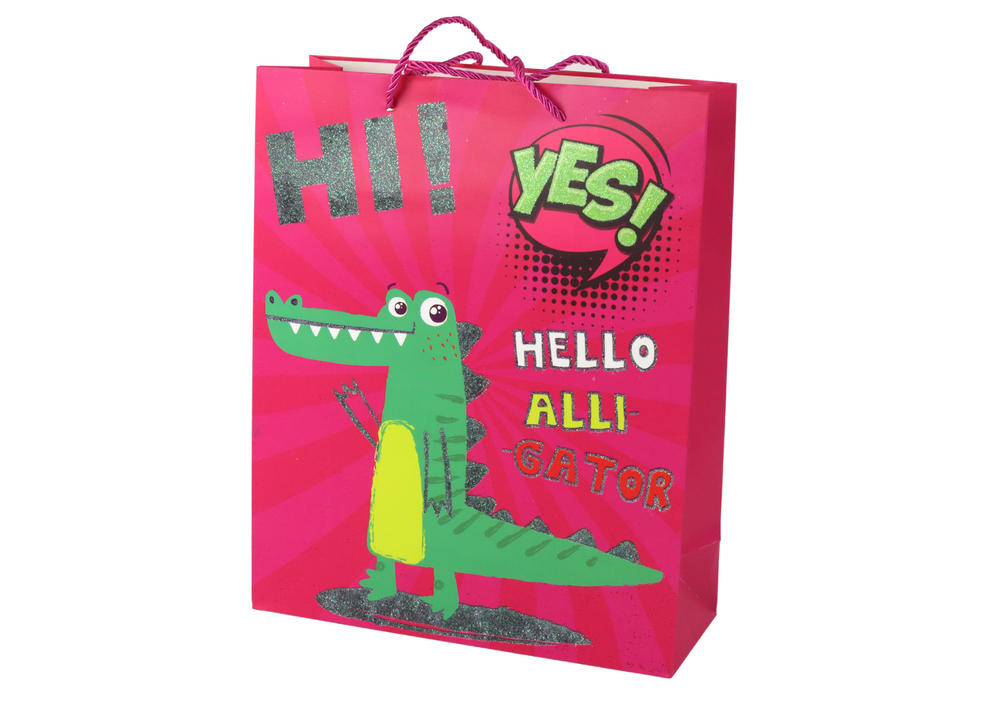 Diese rosa Geschenktüte aus Papier ist die perfekte Wahl zum Verpacken Ihrer Geschenke. Mit den Maßen 32cm x 26cm x 10cm bietet es ausreichend Platz für verschiedenste Geschenke. Das auffällige Krokodil-Motiv, kombiniert mit funkelndem Glitter, sorgt für einen einzigartigen Look. Die eleganten Tragegriffe verleihen der Geschenktüte einen stilvollen Touch und machen sie nicht nur praktisch, sondern auch zu einer Augenweide. Machen Sie Ihre Geschenke mit dieser besonderen Verpackung unvergesslich!