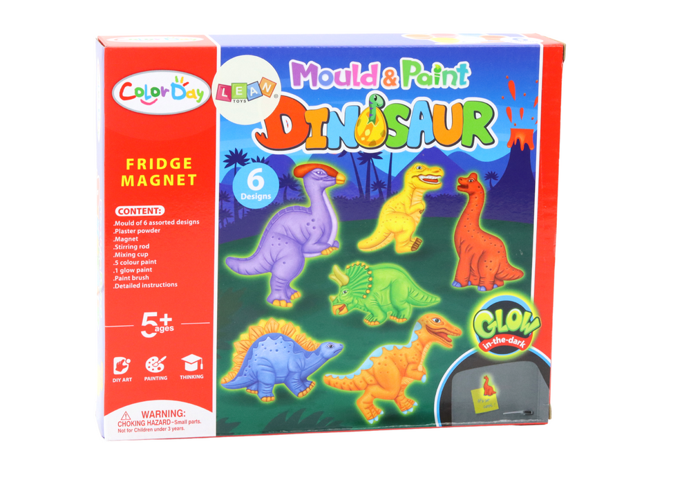 Mit dem Kreativ-DIY-Set Gipsmagnete Dinosaurier können Kinder auf spielerische und lehrreiche Weise ihre Kreativität und ihr handwerkliches Geschick entdecken. Dieses Set bietet alles, was Sie brauchen, um 6 einzigartige Dinosaurier herzustellen, die als lustige Magnete am Kühlschrank befestigt werden können. Kinder können ihrer Fantasie freien Lauf lassen und mit Freude farbenfrohe und lustige Designs erstellen. Ein perfektes Geschenk für junge Entdecker, die basteln und gleichzeitig lernen möchten!