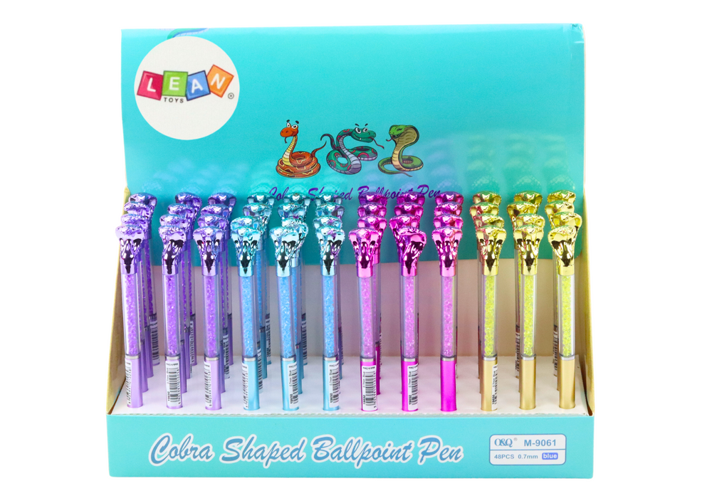 Der Cobra Kugelschreiber Diamonds Blue Refill 0,7 mm Mix ist die perfekte Kombination aus Stil und einzigartigem Design. Dieser elegante Stift, der am Ende mit einer Kobra verziert ist, fällt sofort ins Auge. Das transparente Gehäuse mit kleinen Diamanten funkelt dezent im Licht. Mit seiner blauen Tinte ist dieser Kugelschreiber ideal für den täglichen Gebrauch, sodass Sie immer mit Stil schreiben können.