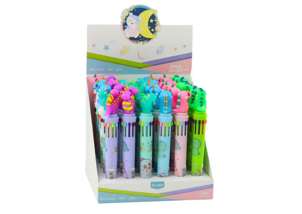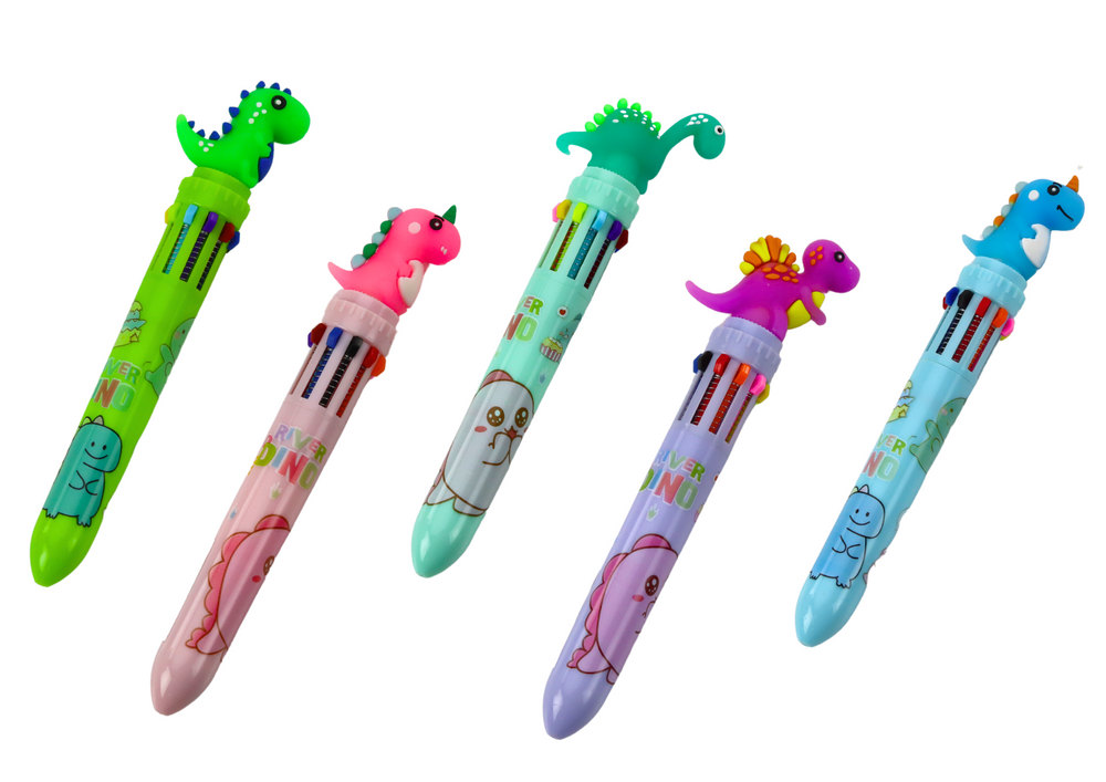 Entdecken Sie den mehrfarbigen Dinosaurier-Automatikstift mit einem Mix aus 10 Farben. Dieser Stift ist mit einem niedlichen Dinosauriermotiv verziert, das auf jeden Fall die Aufmerksamkeit von Kindern auf sich ziehen wird. Schreibfreude und Kreativität vereinen sich und machen den Schreiballtag wieder spannend. Perfekt für die Schule, zu Hause oder unterwegs und eine lustige Ergänzung für jedes Federmäppchen. Machen Sie Ihr Schreiberlebnis mit diesem einzigartigen Stift farbenfroh und abenteuerlich.