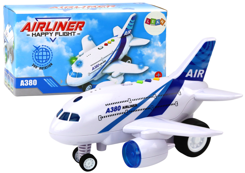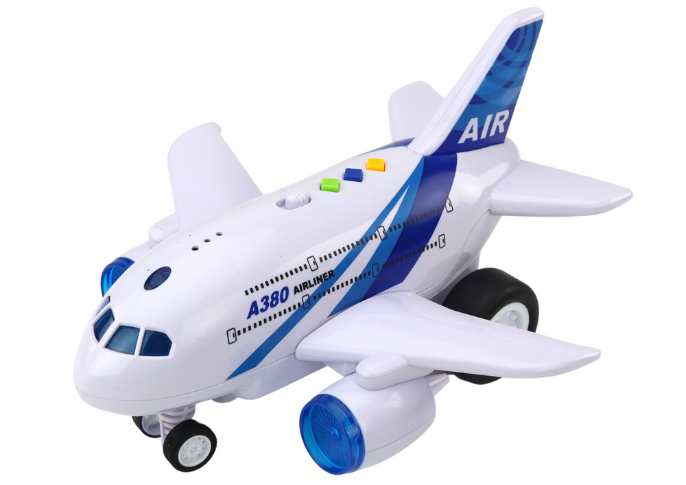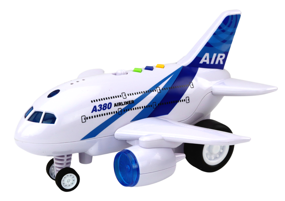 Dieses Passagierflugzeug ist ein realistisches Spielzeug in Weiß und Blau. Das Flugzeug ist mit Licht- und Soundeffekten ausgestattet und verfügt über Gummiräder, was für unvergesslichen Spielspaß sorgt. Es ist das perfekte Geschenk für junge Luftfahrtbegeisterte.