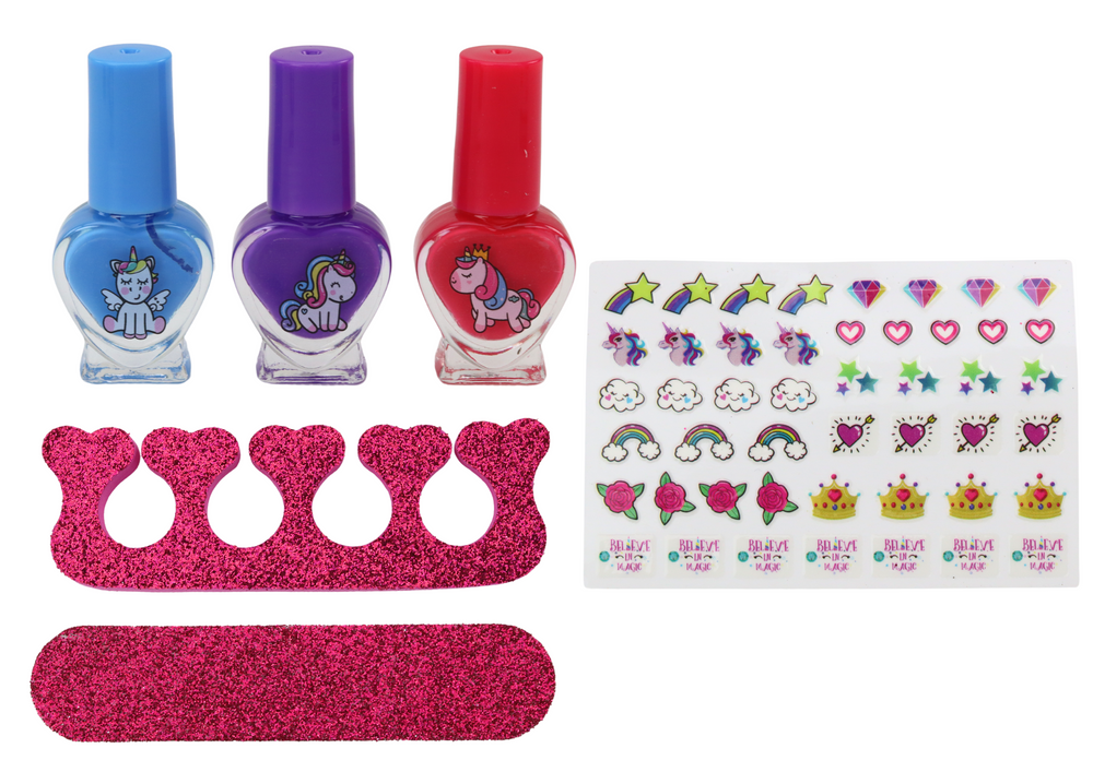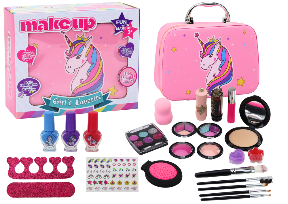 Entdecken Sie das zauberhafte Beauty Make-up Set Cosmetics im süßen rosa Einhorn-Etui. Dieses einzigartige Set enthält alles, was Sie brauchen, um Ihrer Kreativität freien Lauf zu lassen. Das Set beinhaltet 3 Nagellacke, ein Set Make-up-Pinsel, 2 Lippenstifte, einen zusätzlichen Pinsel, eine Parfümflasche, Rouge, Lidschatten, Lipgloss und verschiedene Accessoires. Mit den Maßen 20 cm x 15 cm x 7 cm ist dieses stilvolle Federmäppchen perfekt für zu Hause und auf Reisen. Lassen Sie Ihrer Fantasie mit diesem wunderschönen Make-up-Set freien Lauf!