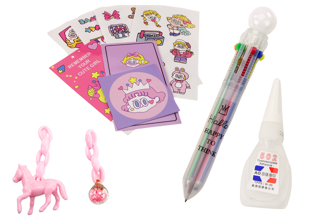 Entdecken Sie unser Notizbuch mit Zubehör in der trendigen rosa Ledervariante. Dieses stylische Notizbuch verfügt über einen praktischen Magnetverschluss und bietet im Inneren Platz für bunte Karten und Steckfächer. Das Set enthält außerdem fröhliches Klebeband, Aufkleber, Lesezeichen mit Pompons, einen bunten Stift, Kleber und andere süße Dekorationsaccessoires. Perfekt, um Ihre Ideen und Kreationen mit einer persönlichen Note festzuhalten. Ein Muss für jeden kreativen Kopf!