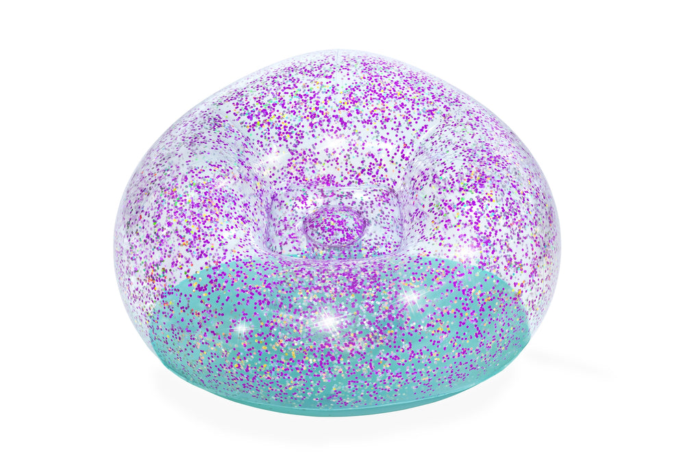 Dieser aufblasbare Glitzerstuhl (75115) von Bestway ist eine bequeme und vielseitige Sitzlösung, ideal zum Unterhalten oder einfach zum Entspannen. Mit den Maßen 114 x 112 x 66 cm bietet dieser Stuhl viel Platz zum bequemen Sitzen. Der Stuhl hat eine maximale Tragkraft von 75 kg und lässt sich dank des einzigartigen Luftventils leicht aufblasen und entleeren. Die Verpackungsmaße betragen 30 x 7 x 30 cm und das Gewicht von nur 1,69 kg, sodass der Stuhl leicht zu tragen ist. Verleihen Sie Ihrem Innen- oder Außenbereich mit diesem trendigen Glitzerstuhl einen Hauch von Glamour.