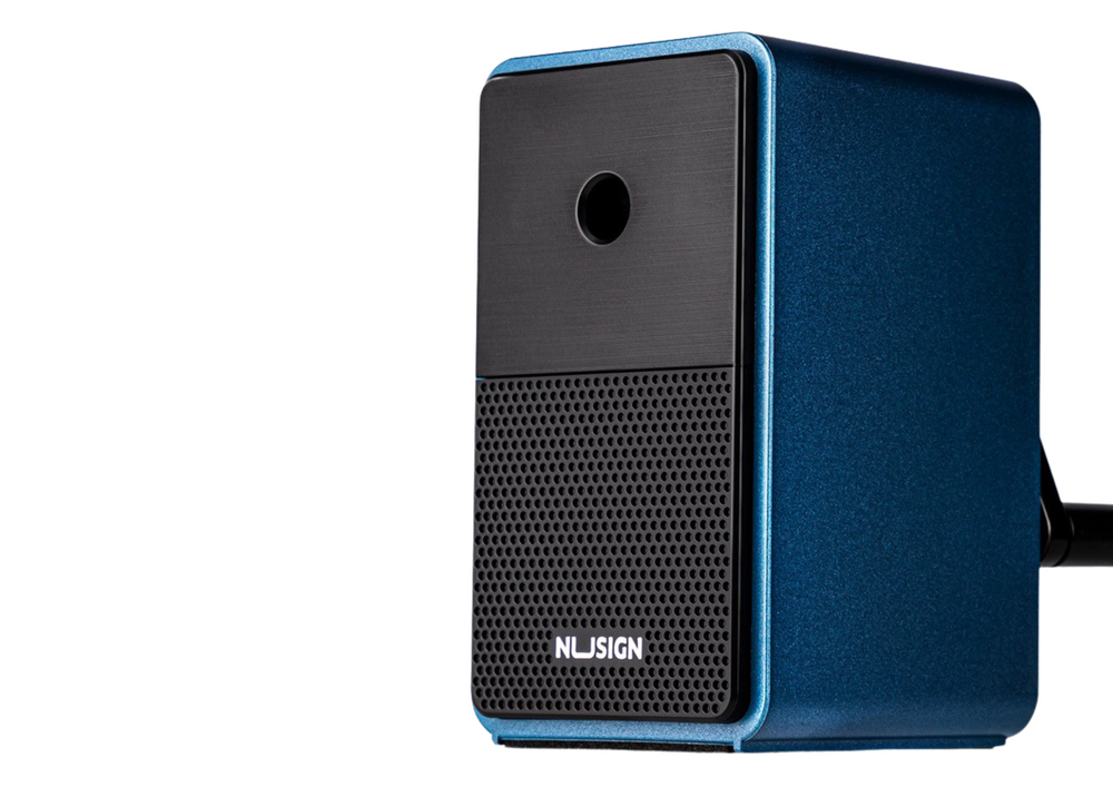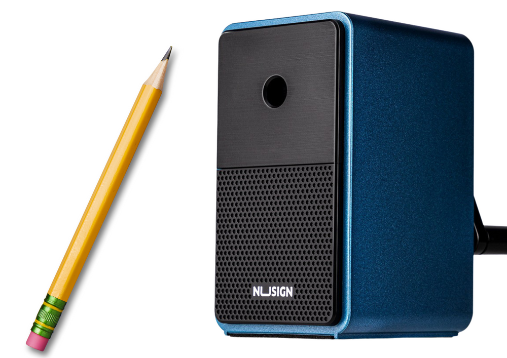 Gebogener Spitzer mit Auffangbehälter, Klingeneinstellung blau. Dieser elegante Spitzer ist mit einem geräumigen Behälter zum Auffangen von Holzspänen ausgestattet. Durch die verstellbare Länge ist das Anspitzen von Blei- oder Buntstiften kinderleicht. Die Handhabung ist einfach und das Mahlen präzise, ​​zudem ist das Entleeren des Behälters sehr komfortabel.